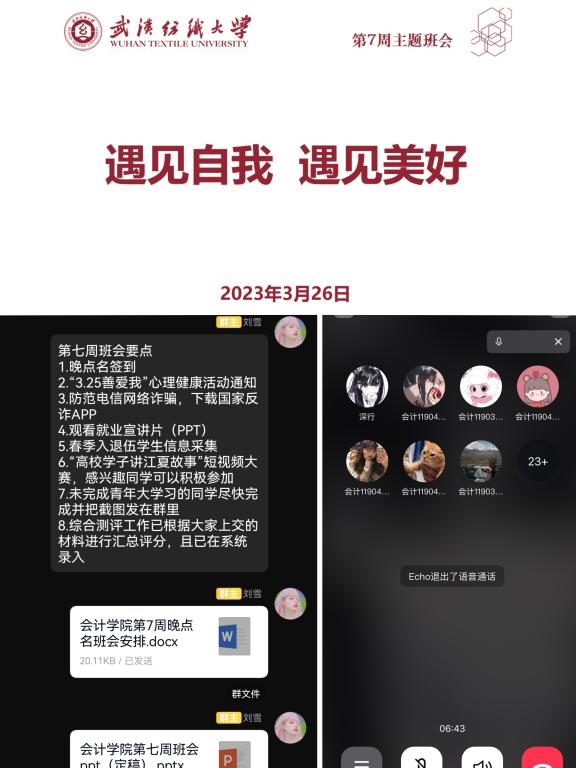 2023年3月26日,36365线路检测中心no1开展了“遇见自我 遇见美好”主题班会,就心理健康相关活动、防范电信诈骗、就业实习相关内容进行了解读。各年级辅导员、各班班主任组织并参加班会。