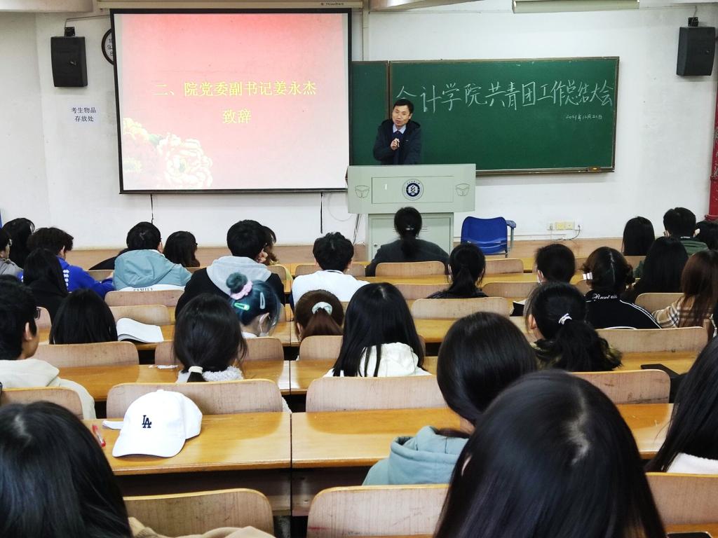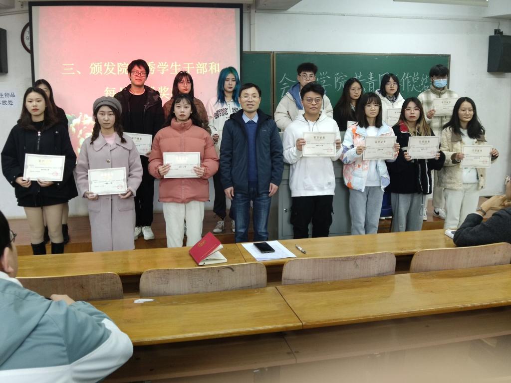 姜永杰通过“点赞”、“感谢”、“加油”三个关键词,在对同学们表示充分肯定和由衷感谢的同时,鼓励大家夯实基础、继续努力。他对全体学生骨干提出了四点希望:一是要勇担责任,与时代同向同行,让家国情怀扎根于心;二是要履职尽责,发挥桥梁纽带作用,聚焦主责主业,做好本职工作;三是要积极进取,传递青春正能量,发挥模范带头作用;四是要主动创新,打造特色活动品牌,不断提高学院共青团工作的影响力。