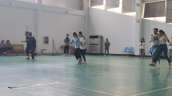 本次活动为团体活动,六人一组,由参赛成员男女自由组队。活动设置了两人三足、扔沙包、跳长绳、呼啦圈传递、羽毛球赛等项目。