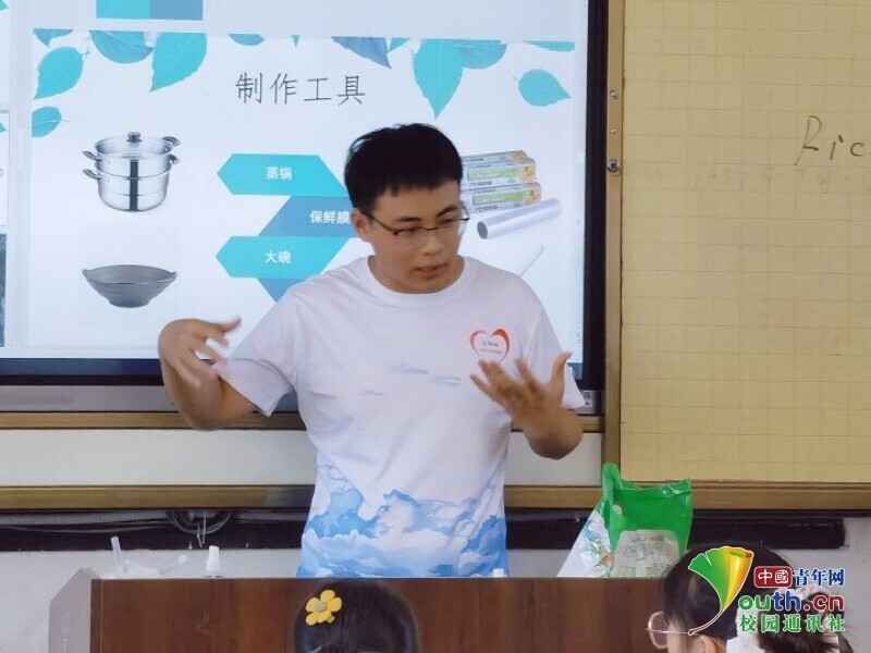 图为小朋友在志愿者的带领下清洗浸泡米酒,再晾干放入酒曲,然后静静等待醇香米酒的出炉。中国青年网通讯员 尹力 摄