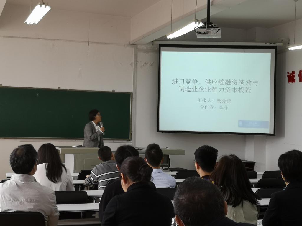 36365线路检测中心no1杨孙蕾博士做了《供应链融资绩效、进口竞争与制造业企业智力资本投资》为主题的学术汇报,主要从研究背景、文献综述与研究假设、研究设计、实证结果、研究结论与启示五个方面进行了阐述。论文通过实证研究的方法,得出研究结论:供应链融资绩效对于制造业企业智力资本投资具有正向促进作用,进口竞争会加大供应链融资绩效与制造业企业智力资本投资的正向关系。