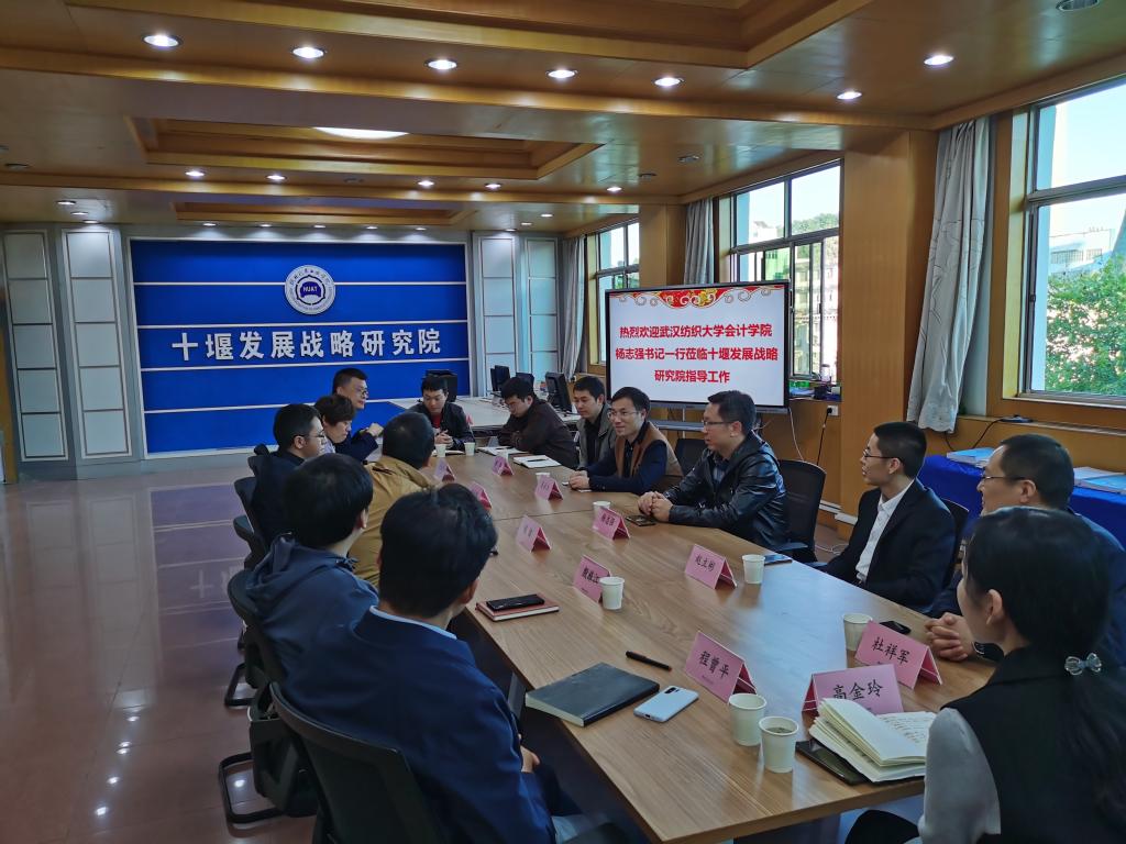 湖北汽车工业学院经济管理学院钱洁对杨志强一行的到来表示热烈欢迎,简要介绍了学院基本情况和十堰发展研究院情况。双方就专业建设、人才队伍建设、课题申报等方面进行了交流。