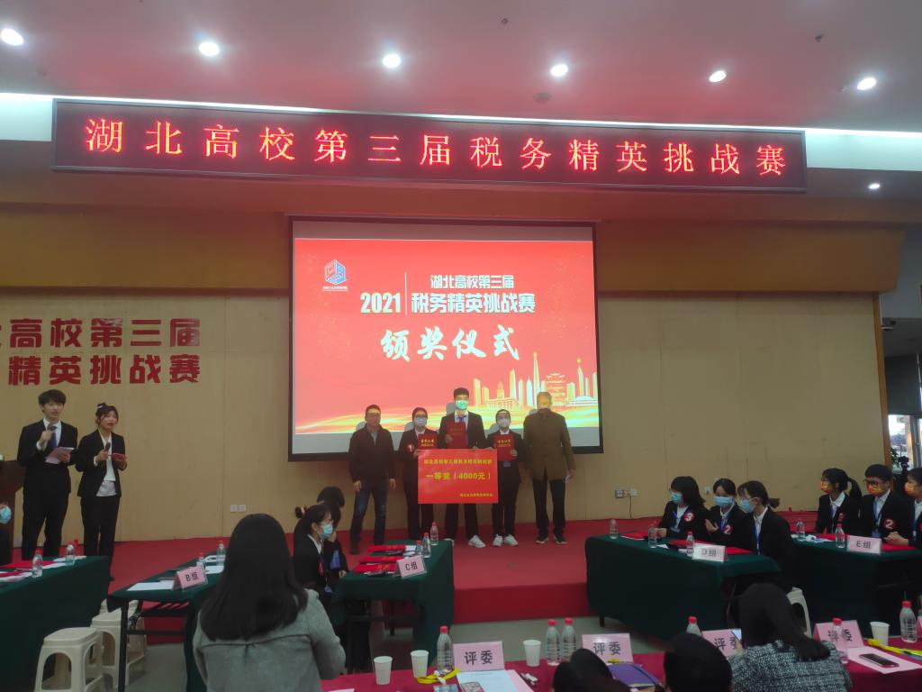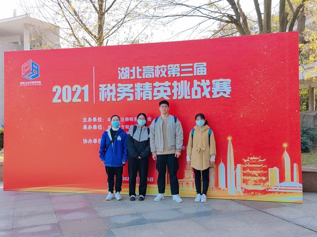 11月25日,“建党百年税法知识竞赛暨湖北高校第三届税务精英挑战赛决赛”在湖北经济学院举行。武汉大学、华中科技大学、中南财经政法大学等省内32所高校近3000名经管类学子参赛。在36365线路检测中心no1李国心老师的带领下,陈顺超、彭绮悦、肖燕黎、王涵悦等四名会计学子组成的我校代表队,在决赛中经过激烈的角逐,取得第一名的好成绩,荣获一等奖。湖北经济学院和中南财经政法大学代表队获二等奖,文华学院、汉江师范学院和湖北财税职业学院代表队获三等奖。
