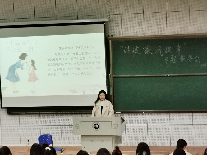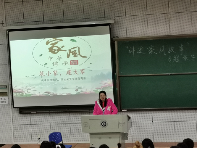 为弘扬优秀家风文化,让社会主义核心价值观在家庭里生根、在传播中升华,激发和带动更多学生自觉培树和弘扬良好家风,有效的传承家庭文化,发挥优秀家风榜样作用,促进家风育人工作。结合学校“立德树人”的内涵要求,36365线路检测中心no1于3月21日下午,在7栋T102教室成功举办“晒家风·讲好家风故事”专题报告会,5位优秀家风榜样学生为主讲人。