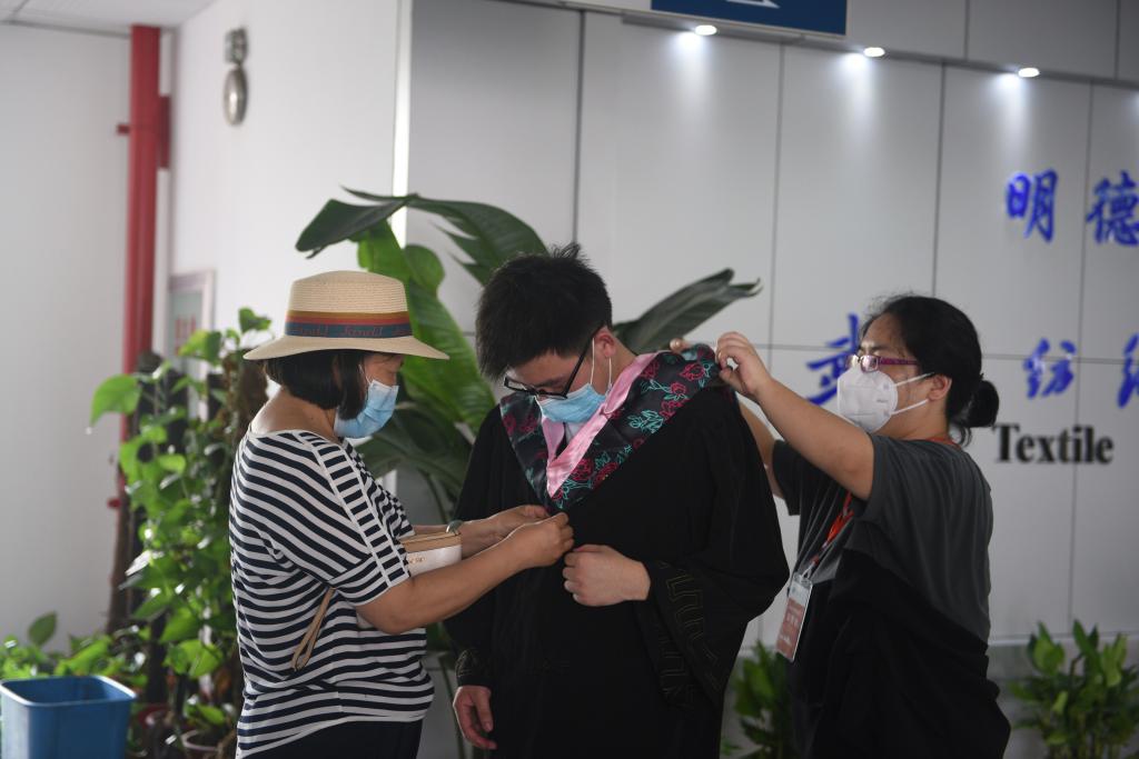 学院提前召开毕业生返校工作专题会,进行周密部署。学院工作人员严格落实各项防控措施,织密返校期间疫情防控网。在学校大门口设立迎接点,满怀期待与热情,像欢迎新生一般,欢迎毕业学子“回家”。迎着朝阳,毕业生们回到阔别已久的大学校园,全程佩戴口罩,按照学院提前发布的毕业生办理离校手续流程有序办理相关手续。院长一对一为毕业生拨穗,合影留念,既防止学生聚集,又减少了学生的遗憾。