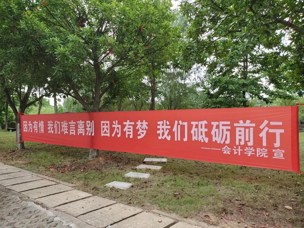 “因为有情,我们难言别离,因为有梦,我们砥砺前行。”“奔涌的‘后浪’,青春不散场,梦想再起航”。学院为欢迎毕业生返校制作的横幅标语饱含了对毕业生学子的满满祝福,温暖动人。