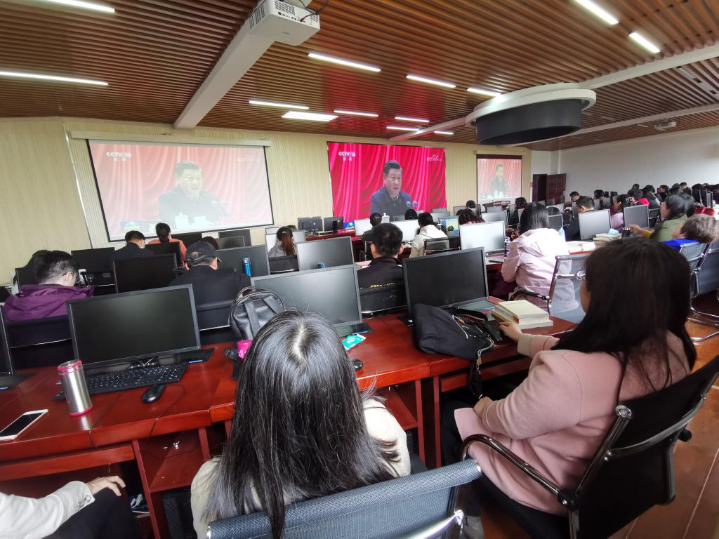 参会人员集体通过“学习强国”平台观看了《习近平在中央党校(国家行政学院)中青年干部培训班开班式上发表重要讲话》和《习近平总书记两会“下团组”重要讲话》学习视频。