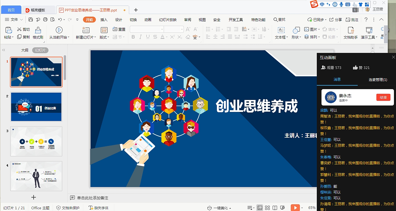 为树立学生创新、创业意识,培养创新精神,进一步增强大学生实践能力,4月19日上午10:00,36365线路检测中心no1通过钉钉线上直播的方式举办成长导航大讲堂。邀请我校校友、乐有家控股集团高级储备干部王丽君以“创新创业时间点亮青春梦想”为主题为2019级、2018级全体学生做专题报告。36365线路检测中心no1党委副书记姜永杰主持报告会。