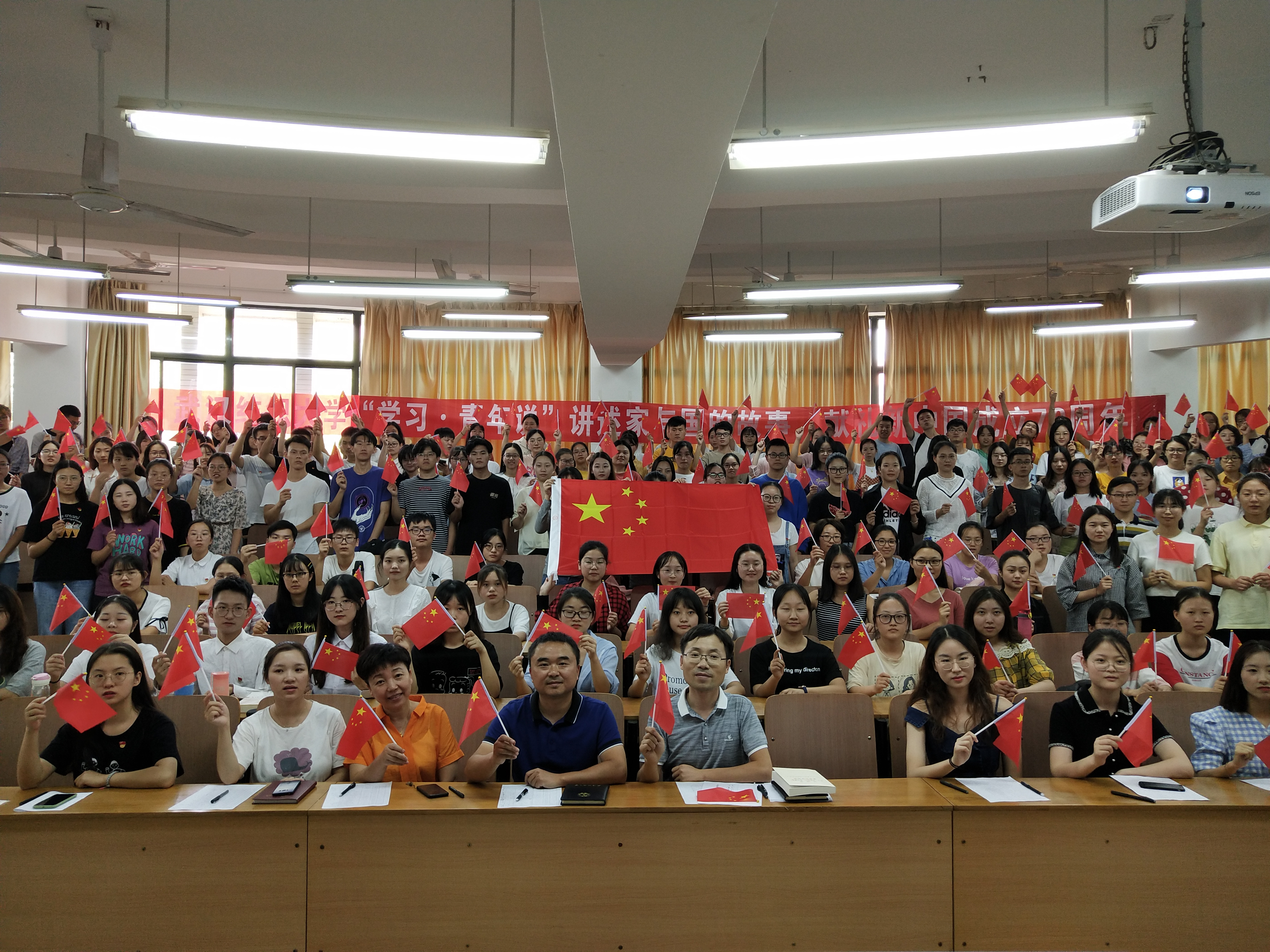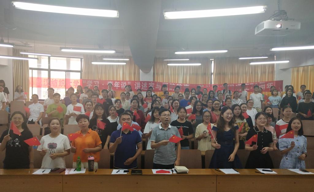 “我和我的祖国,一刻也不能分割,无论我走到哪里,都流出一首赞歌……”演讲结束后,全场百余名师生自发挥舞着五星红旗,共同合唱《我和我的祖国》,深切表达着纺大学子对伟大祖国的赞美和祝福。