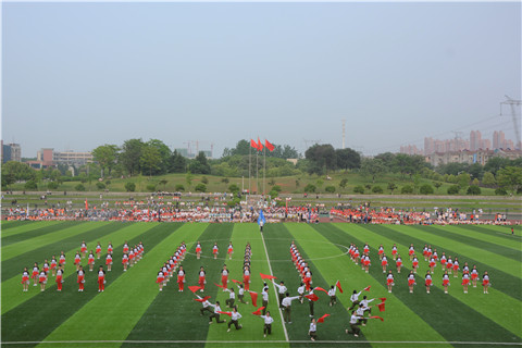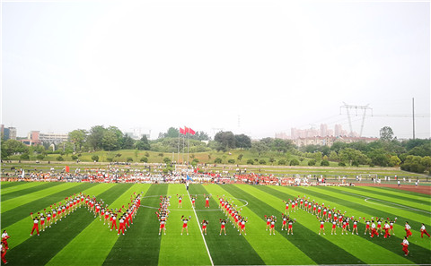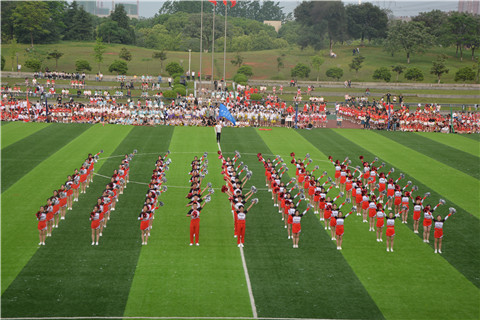 踏着轻快的步伐,会院学子身着热情似火的红色队服入场。伴随着激情昂扬的口号,他们散开成箭头形;前排同学们手持红旗,在深情又富有节奏感的音乐中挥舞,动作极具力量感,开场便吸引住大家的目光。随后曲风一转,队伍变换成三角形方阵,开启了集体啦啦操表演。其舞步之整齐,情绪之饱满,令人叹服。在表演中,同学们相继摆出“2019”、“WTU”、“NO.1”等造型,令在场观众目不暇接,引来阵阵欢呼。更为精彩的是接下来腰鼓队的出场,他们步伐稳健,鼓点声声,震撼人心。最后在激情澎湃、铿锵有力的“青春真能量,会计最闪亮”呐喊声中,36365官网表演结束,赢得了评委与观众的热烈掌声。