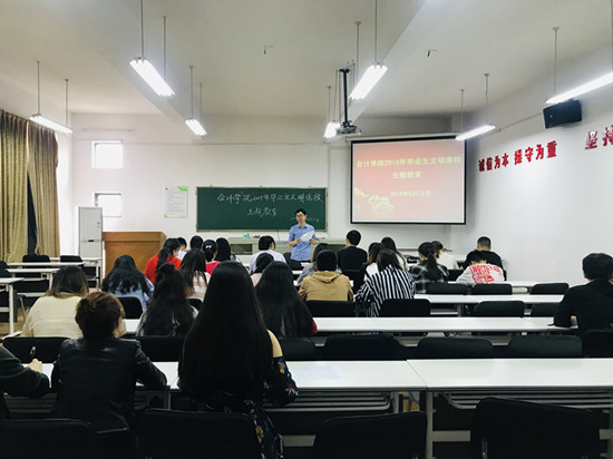 最后,学院党委副书记姜永杰总结讲话。他表示,学院将积极做好毕业前的各项教育服务工作,希望同学们积极参加学院“感恩·致青春”2019年毕业季系列活动,用图片、视频、文字记录下大学期间的感人故事、深厚情谊,做到文明离校。姜书记还与大家分享一篇自己曾经撰写的毕业散文,饱含深情的朗读给大家听,用真情感染学生,鼓励学生把握毕业前时光,为自己的大学生活留下最美好的记忆。