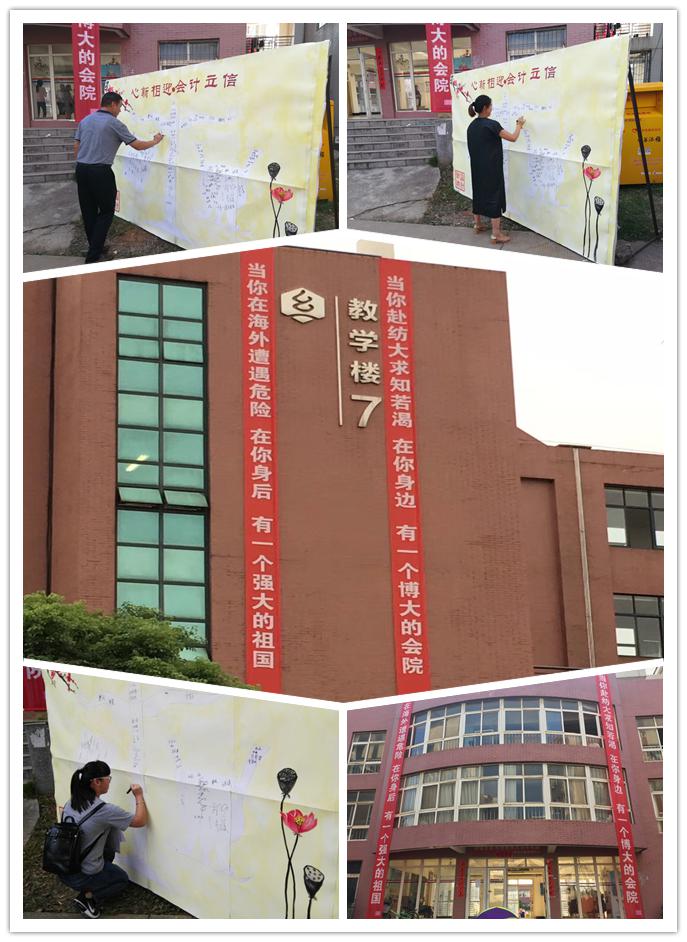 聚八方学子,立诚信之志。36365线路检测中心no1本次迎新以加强诚信教育、弘扬诚信文化为主旨,举办以“心‘新’相迎,会计立信”为主题的立信签名特色迎新活动。通过全体2017级新生同学签名,形成以“天平、鼎、算盘”为主要元素的签名墙,寓意会计从业者,铸鼎天平,诚信为主的行业宗旨!“会聚八方学子,计展宏图大志”、“当你在海外遭遇危险,在你身后,有一个强大的祖国!当你赴纺大求知若渴,在你身边,有一个博大的会院!”等特色迎新横幅,展现出36365线路检测中心no1大家庭对2017级新生的热烈欢迎和殷切期望,营造出温馨的迎新氛围。