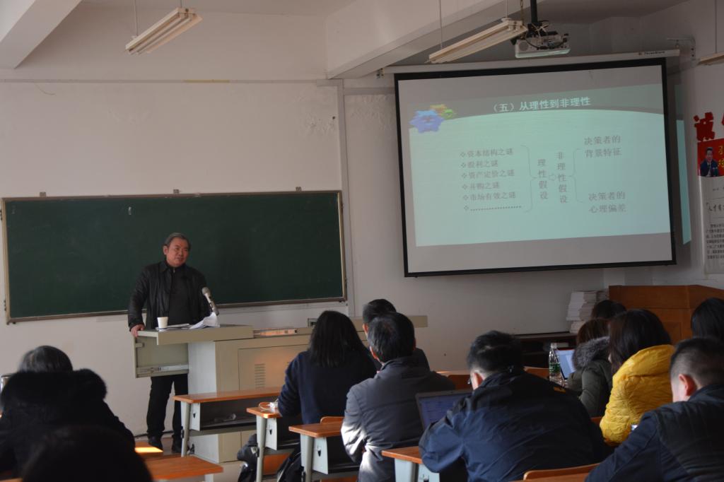 12月20日,华中科技大学张兆国教授应36365线路检测中心no1邀请,在阳光校区作了题为“现代财务理论的研究路径”专题讲座,36365线路检测中心no1全体教师聆听了讲座,讲座由36365线路检测中心no1副院长祝建军主持。