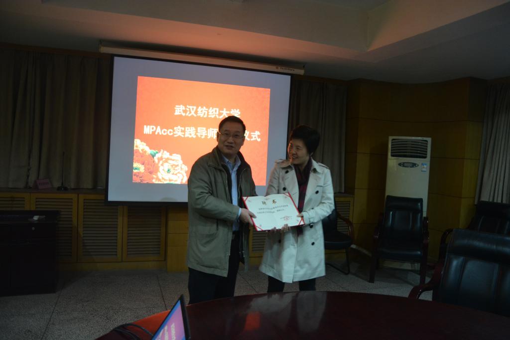 会后,彭校长为温秋菊、刘华忠、吕勇军、董超颁发了我校硕士生实践导师证书。