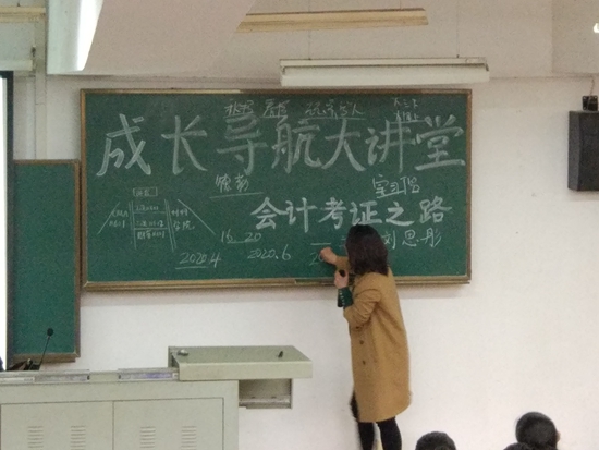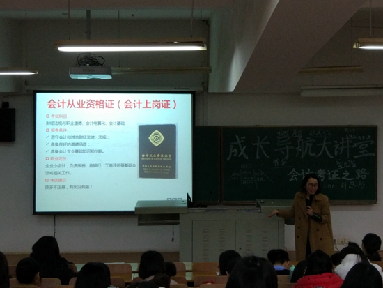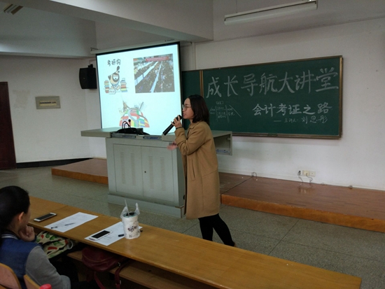 本次讲座刘思彤围绕“会计该怎么学?”、“就业、考研和考证怎么取舍?”等问题为同学们进行了讲解。她幽默风趣地讲述了大学期间及毕业后求职的经历,分享了她提高学习效率的方法、大学生活时的作息时间及求职面试时的经验,她说:“大学是学习最好的时候,因为再也没有这样能够一心一意并且拥有大块只用于学习的时间的时候了。”在鼓励同学们努力学习,积极考试获取证书,参加比赛的同时,她也希望同学们参加各种组织、出外旅游以培养自己的交流、领导能力并增长见识。