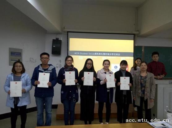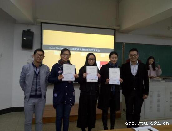 学院为2015年度ACCA全球统考全校单科第一名的学生和ACCA优秀学员颁发了证书和奖金。