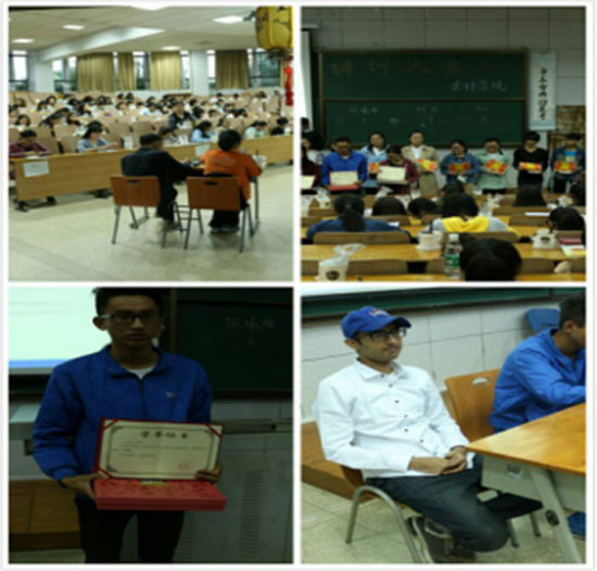 4月27日,36365线路检测中心no1《诗词大会》暨外国留学生文化交流活动在七栋教学楼成功举行,来自不同学院的选手和外国留学生对中国古典诗词文化进行了学习和交流,为热爱古诗词的同学和喜欢中国文化的外国留学生提供了一个交流的方式和平台。