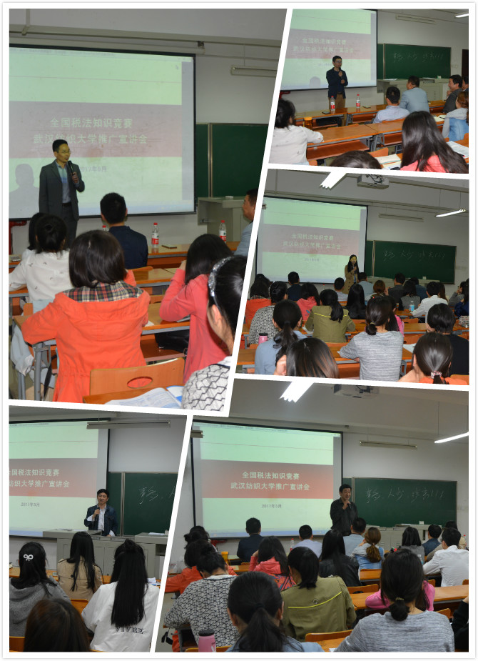 5月4日晚上,“全国税法知识竞赛 税法宣传进校园活动”在我校阳光校区七号教学楼成功举办。湖北省注册税务师协会秘书长张武、中南财经政法大学博士生导师艾华、武汉市国家税务局货劳处科长陶鹏宇、武汉江都税务师事务所所长徐新胜、我校36365线路检测中心no1院长杜国良,及36365线路检测中心no1师生200余人参加了活动。