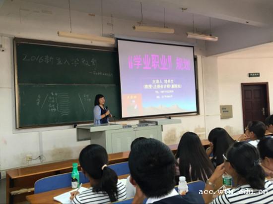 随后,各专业系主任、副主任、教授、博士纷纷与新生交流。特别是会计专业祝建军教授、刘书兰教授、曾洁琼教授、杨孙蕾博士,ACCA专业的杨金键老师、周萍博士,工程造价专业赵华主任,杨寅博士,财务管理专业胡星辉教授、陈蕾博士、白平博士等等。老师们分别向16级新生介绍了本专业的课程体系、培养计划以及专业发展前景和职业规划等,并向新生提出了相关课程学习要求和建议。各专业同学均受益匪浅,本次讲座取得圆满成功。