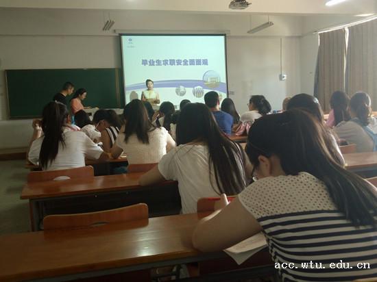随后,武处长就求职安全隐患、出现安全隐患的原因、防止安全隐患的方法等话题,与大家分享了他的观点、经验与方法。武处长首先谈到一些求职安全方面的案例,如:利用招聘,诱骗大学生踏入非法传销的陷阱;声称收取“保证金”,诱骗大学生的钱财等等。武处长认为,大学生求职者之所以被骗,主要原因在于:毕业生就业压力大,急于择业的心理,以及薄弱的防范意识等。武处长指出,外出实习兼职应加强安全防范意识。在生活中,很多大学生总是认为,这些骗局不会发生在自己身上,但是,如果不加防范,当事情发生,后果将不堪设想。所以,就以上现实情况,武猛处长提出了几条防骗建议。如在阅读招聘信息时,谨防过于空泛的条件,过高的薪酬,以及没有任何条件限制的招聘信息。在面试时,身份证,毕业证等重要证件,不可留存在对方手中。签订合同时,注意观察合同条款,让合同成为保护自己的工具,而不是对自己的限制。其后,武处长也谈到了网络招聘时的信息保密等问题,并给出了切实可行的建议。