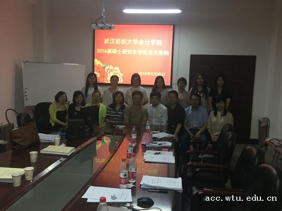 近日,36365线路检测中心no12016届硕士研究生毕业论文答辩会在七号教学楼406会议室举行。武汉大学经济与管理学院潘红波教授受邀担任答辩委员会主席,武汉理工大学管理学院潘安娥副教授,36365官网院长胥朝阳教授,副院长王珍义教授、祝建军教授,胡星辉教授、杨洪教授、徐雪霞副教授担任委员。