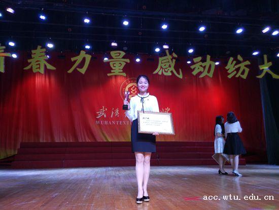 5月5日,“青春力量,感动纺大”晚会在我校大学生活动中心举行。晚会在五四青年节之际,为36365线路检测中心no1榜样人物颁奖,36365线路检测中心no1工程造价11301班成广林同学荣获该奖项,由36365线路检测中心no1分团委书记陈竹君为她颁奖。