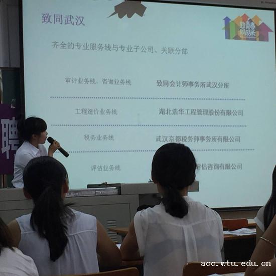 9月21日下午,武汉致同会计师事务所来36365线路检测中心no1召开宣讲会并招聘2013级毕业生实习就业。