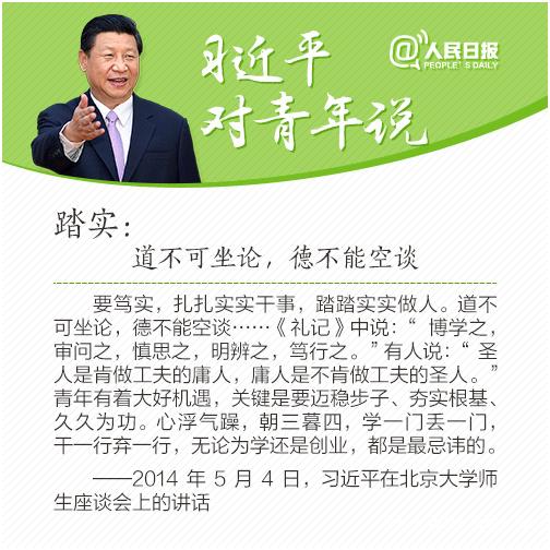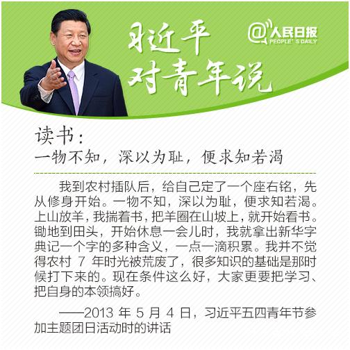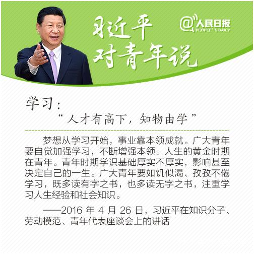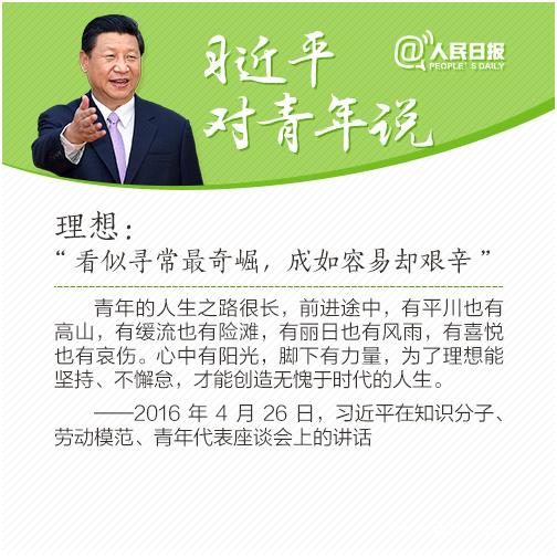 人民网北京5月4日电 人民日报微信公众平台于5月4日刊发《习近平对青年说的9句话》一文,全文内容如下: