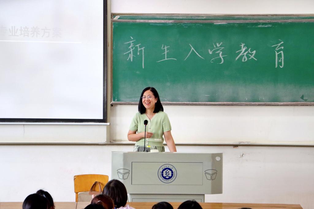 会计系杨孙蕾主任针对会计专业新生介绍了会计专业培养方案的三个特点,剖析了2022版培养方案体现出的数智化、创新创业、前沿性的特点,她提醒新生们要关注学业情况,学好专业课,为之后的职业生涯打下良好的学科基础。她还从就业和考研两方面给同学们做了一个简单的规划展望。